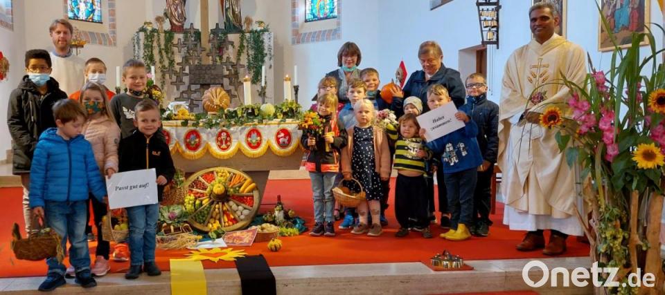 Üppig geschmückte Erntedank-Altäre lenken oft von den großen existenziellen Problemen in der Welt ab, sind aber ebenso wichtige Impulse zum Nachdenken. Liebevoll geschmückte Altäre in Brand und Nagel lassen die Gottesdienstbesucher immer staunen und machen den Reichtum in einem der reichsten Länder der Welt bewusst. „Da sieht man, wie gut es uns geht“, ist ebenso ein vielfach gebrauchter Ausdruck beim Betrachten der Altäre wie „... und in anderen Teilen der Welt haben die Menschen nichts zu essen“. Diese Diskrepanz bestimmte auch die Gottesdienste in Brand und Nagel, in die Kinder mit eingebunden waren. Pastoralreferent Maximilian Pravida lud ein, genau hinzuschauen und hinzuhören, wenn all die Gaben, die bereits den Altar schmückten, und die, die Kinder beim Gabenzug mitbrachten, von Gott und seiner Liebe zu den Menschen erzählen. Die Kartoffel, unscheinbar und doch wichtig, fordere auf, für das Alltägliche dankbar zu sein, formulierte eine Sprecherin, auch für die Menschen, die Eltern, die für das Wohlergehen sorgen. Die Weintrauben mit ihren Beeren symbolisierten den Zusammenhalt, der Kürbis mit bescheidenem Nährwert warne vor dem Ringen um Ruhm und Erfolg; schließlich gehören Blumen zu einem Erntedank-Altar, um die Vielfalt, die Schönheit und den Reichtum des Lebens darzustellen. „Was wäre das Leben ohne das scheinbar Nutzlose?“, fragte Maximilian Pravida. „Was wäre das Leben ohne Spiel, ohne Musik oder Kunst?“ Der Ährenstrauß sei das prägende Symbol für eine gute Ernte überhaupt, schließlich entstehe aus den Ähren Brot, das zu den wichtigsten Nahrungsmitteln und zum Überbegriff von Nahrung überhaupt geworden sei. In den Fürbitten wurden die Gedanken vertieft, im „Vater unser“ erfuhr eine der Bitten besondere Beachtung: „Unser tägliches Brot gib uns heute.“
