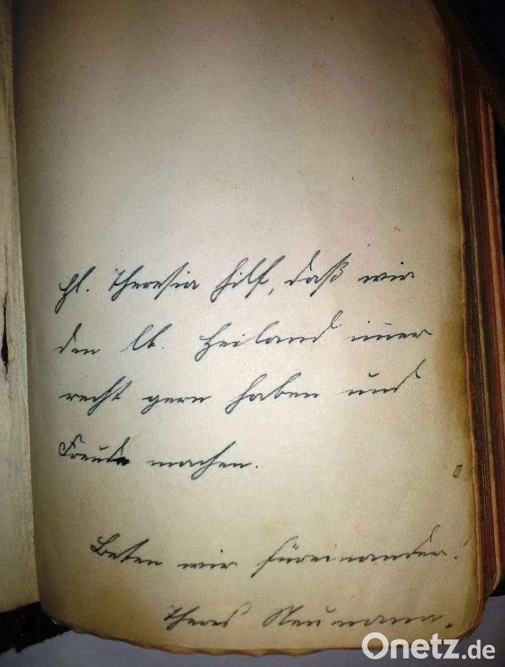 Zwei Geschenke hatte die Resl Anna und ihrer Schwester Maria hinterlassen. Sie selbst bekam ein blechernes Vöglein, das pickend auf dem Tisch herumlief, nachdem man es aufgezogen hatte. Ihrer Schwester schenkte sie ein Gebetbüchlein, in Leder gebunden, mit Widmung. Das Vöglein sei ihr abhandengekommen, bedauerte Anna Bauer stets. Das Büchlein gibt es noch. Ihre Schwester hat es ihrer Tochter geschenkt, die nun erfahren hat, dass es im letzten Band der Reihe "Heimat Landkreis Tirschenreuth" einen Bericht über den Pfarrer Söllner gab, in dem auch der Besuch der Resl in Ebnath beschrieben ist. Sieglinde Pohl wohnt mit ihrem Mann in Obersassbach im Schwarzwald und hat noch eine Ferienwohnung in Ebnath. Immer wenn sich das Ehepaar hier aufhält, besuchen sie auch Else Erhardt in Brand; mit ihr sind sie seit der Jugend befreundet. Auf diese Weise gelangte das Gebetbüchlein nun nach Brand, wo es sicher verwahrt wird. Gerne überlässt Frau Pohl das Büchlein der Pfarrei, wenn Interesse besteht.