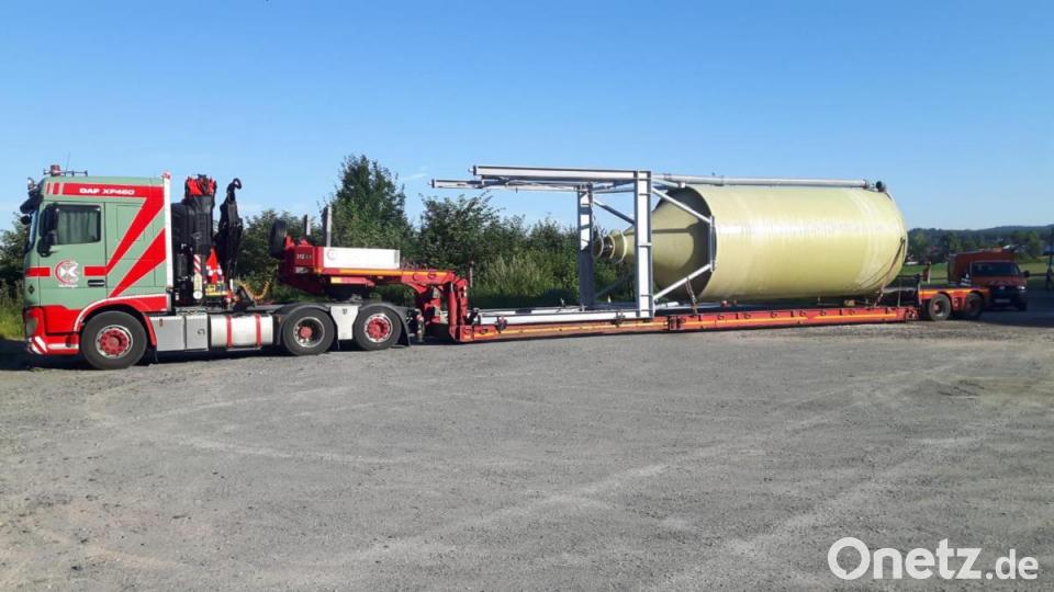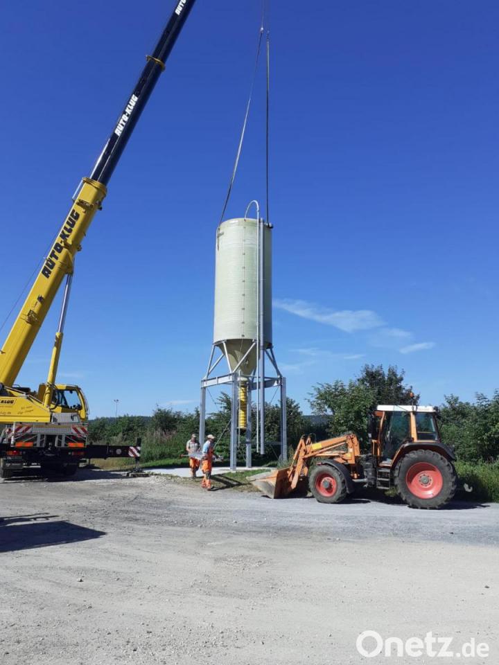 Bei der Abnahme in Anwesenheit von Michael Mussotter von der Herstellerfirma Reich-Tank im oberbayerischen Pürgen und Albert Hofmann vom Bauamt waren der gesamte Bauhof und auch Bürgermeister Bernhard Schindler da. Das Team hatte in der Vorbereitung ganze Arbeit geleistet. Nur zwei Leute waren nötig, um das Ungetüm aufzustellen: Lkw-Fahrer und Kranfahrer. Nach dem Ablassen auf das Fundament zeigte sich, dass der Bauhof seine Hausaufgaben gemacht hatte. Zentimetergenau rastete das Tragegestell in die Halterung ein und die 16 Schrauben waren schnell angezogen. Das Aufnehmen des Salzes ist nun ein Kinderspiel: darunterfahren, Schlauch runterkurbeln und den Trichter öffnen. Das war's! Hintergrund