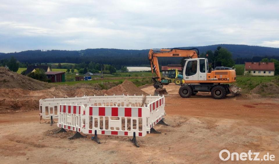 Aus Richtung Kemnath bietet sich mit dem Baugebiet Brunnäcker ein Bild einer riesigen Baustelle: Große Maschinen, aufgeschichtete Rohre und Kabelrollen bestimmen das Bild. Ein Zeichen, dass es hier zügig vorangeht. Wasserleitung und Gasanschluss sind verlegt, derzeit werden die Kabel eingebaut. Die Straße führt in Richtung Kreishaus, reicht jedoch nicht bis dorthin, sondern biegt 100 Meter davor nach rechts ab, mündet in die bestehende Straße und schließt den Ring. Als grobes Ziel für die Fertigstellung nennt Bürgermeister Bernhard Schindler Ende Juli, wobei natürlich auch die Witterung passen muss.