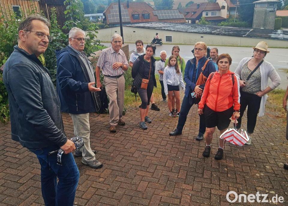 Nach einer Stärkung machte sich die Gruppe auf den Weg. Informationen zum Bruckweg, die älteste Straße von Brand, hatte Bertram Nold, ebenso zur Entstehung der Fichtelberger Straße, die als Kern des Orts gilt, von dem aus er sich entwickelt hat. Am „schwebenden Schlachthaus“ informierte Bürgermeister Bernhard Schindler die Gruppe über die Projekte der Städtebauförderung. Dann ging es weiter am Baugebiet „Brunnäcker“ vorbei in die Jahnstraße Richtung Sportplatz.