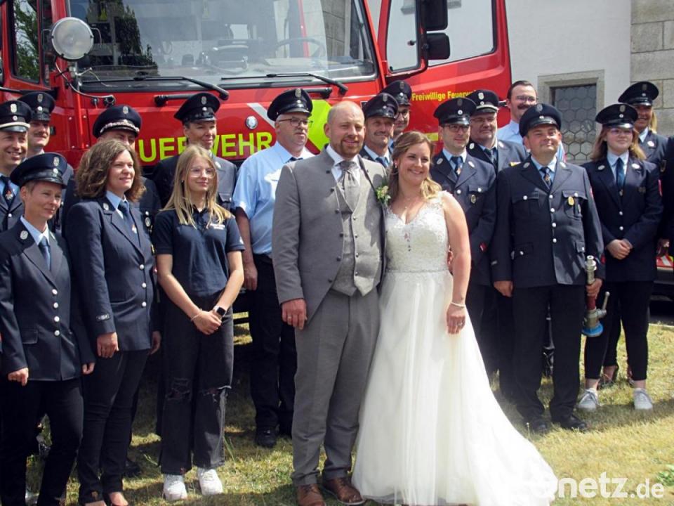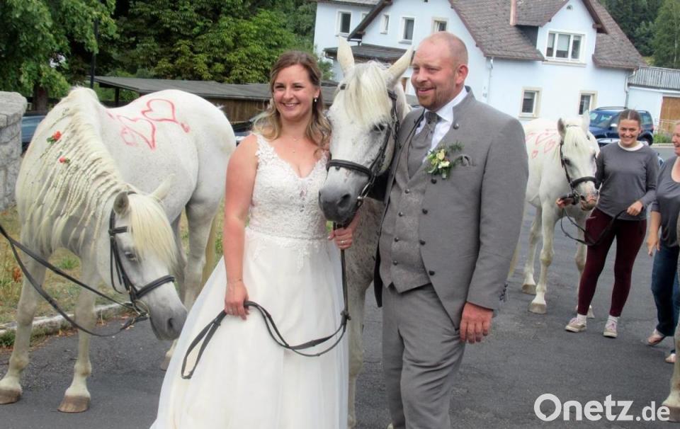 Da Braut und Bräutigam öffentlich sehr engagiert sind, nahm das Gratulieren auf dem Kirchplatz viel Zeit in Anspruch. Maria Söllner ist Jugendbeauftragte in Brand, daher überbrachte der Jugendgemeinderat die besten Wünsche. Vor Ort waren auch die Theatergruppe Brand, die Feuerwehr und die Wasserwacht Nagel sowie die Tischtennis-Sparte des SSV Brand. Und da der Bräutigam öfter auf der Crazy-Horse-Ranch in Brand aktiv ist, erwarteten auch Pferde das frischvermählte Paar nach dem Gottesdienst.