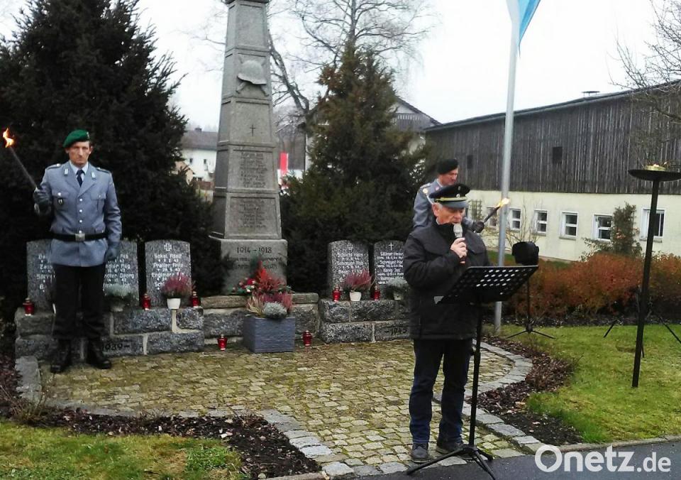 Das Gedenken am Volkstrauertag ehre das Leid, das die Opfer zu tragen hatten, und es ehre darin prinzipiell die Würde ihrer Personen, meinte Reinhard Bauer für die Krieger- und Soldatenkameradschaft (KSK) Fuhrmannsreuth. Dies sei die Grundüberzeugung unserer Kultur, die sich auf die Menschen- und Bürgerrechte jedes Individuums gründet. Über viele Jahre hinweg sei aus der Trauer um die Toten und aus ihrer Würdigung immer wieder das Bedürfnis entstanden, ihre Opfer auch dadurch zu ehren, dass man Gründe für die Rechtfertigung ihres Todes vortrug. Damit habe man oft die Gründe für die Kriege, denen sie zum Opfer gefallen sind, gerechtfertigt.