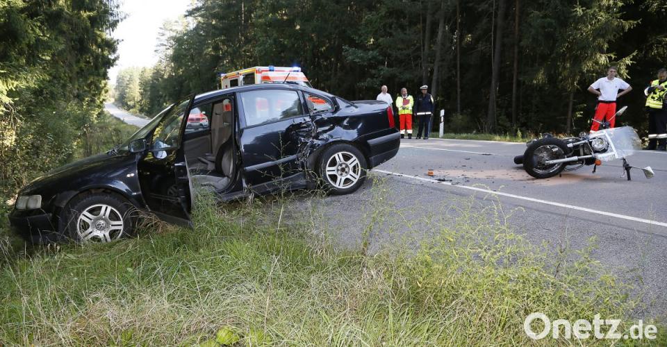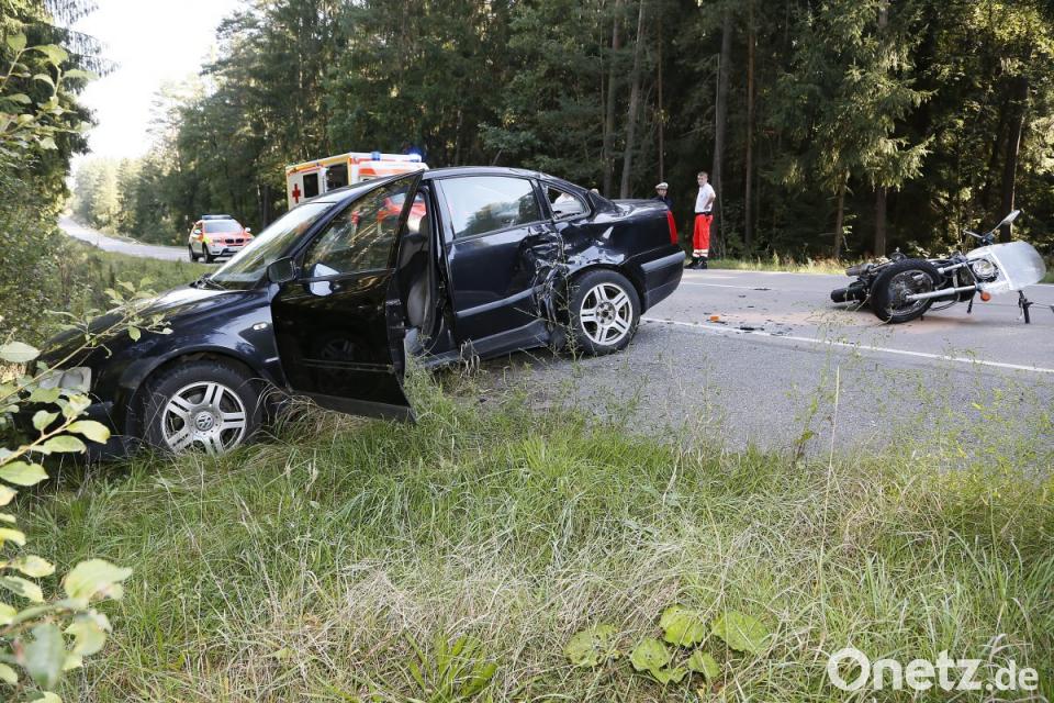 Ein 75-jähriger aus Teublitz war laut Angaben der Polizei vor Ort am Sonntag gegen 9.50 Uhr mit seiner Honda auf der SAD 1 zwischen der Kaspeltshuber Kreuzung und Bruck unterwegs. Vor ihm fuhr ein 57-jähriger aus Maxhütte-Haidhof mit seinem VW Passat. Der Autofahrer wollte links in einen Feldweg einbiegen und wenden. Gleichzeitig hatte der Motorradfahrer aber zum Überholen angesetzt. Der Autofahrer übersah offenbar die Honda. Das Motorrad rammte den VW auf der Fahrerseite. Der 75-Jährige wurde durch den Aufprall über das Auto geschleudert und war sofort tot.