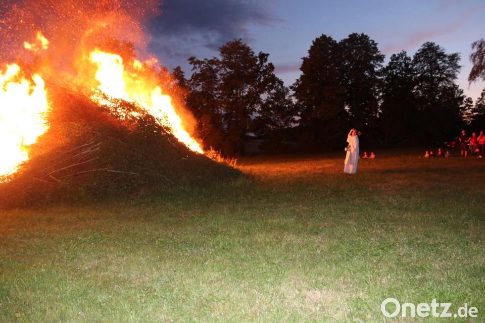 Vor dem Feuerwehrhaus in Diepoltshof hatten viele freiwillige Helfer der Feuerwehr Brudersdorf wieder einen großen Holzstapel sowie die alten Christbäume aus dem vergangenen Jahr aufgeschichtet: Am Freitag war angerichtet für ein prächtiges Johannisfeuer.