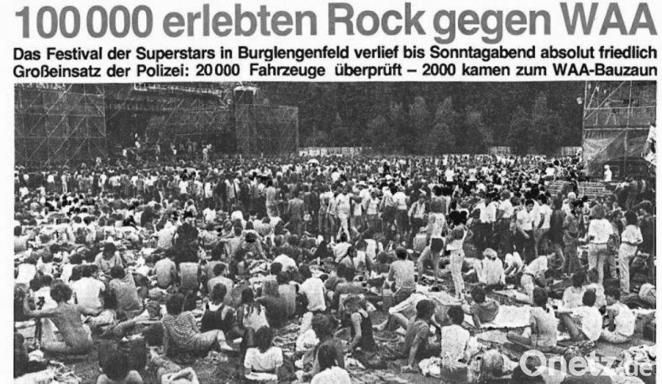"Menschenmassen, soweit das Auge reichte: Zehntausende bejubelten die internationale Rock-Prominenz", titelte der Neue Tag am Montag den 28. Juli 1986. Am Wochenende zuvor hatte das fünfte Anti-WAAhnsinns-Festival in Burglengenfeld statt - als Protest gegen die damals geplante Wiederaufbereitungsanlage in Wackersdorf. 100 000 Menschen sollen sich damals - nach Aussage des Veranstalters - alleine am Samstag auf dem Veranstaltungsgelände aufgehalten haben. Auf der Bühne: Udo Lindenberg, BAP und Wolfgang Ambros. Am Sonntag folgten unter anderen Herbert Grönemeyer und Die Toten Hosen.