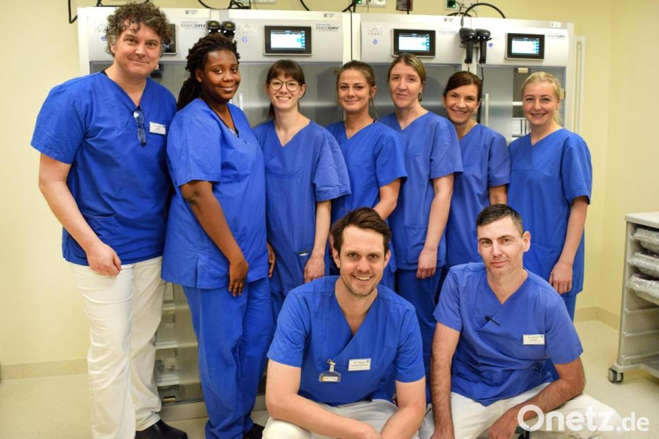 Wie die Klinik informiert, werden in der Endoskopie täglich bis zu 15 Spiegelungen von Darm, Magen und Gallenwegen durchgeführt. Neben Dr. Josef Zäch und dem Leitenden Oberarzt Martin Gregor sorgen Dagmar Ehrenreich und ihr siebenköpfiges Team aus speziell fortgebildeten Pflegefachkräften für reibungslose Abläufe und bestmögliche Betreuung der Patienten. Die endoskopischen Untersuchungen ermöglichen schonende Diagnosen und minimalinvasive Eingriffe, bei denen Polypen oder Tumore im Frühstadium entfernt werden können.