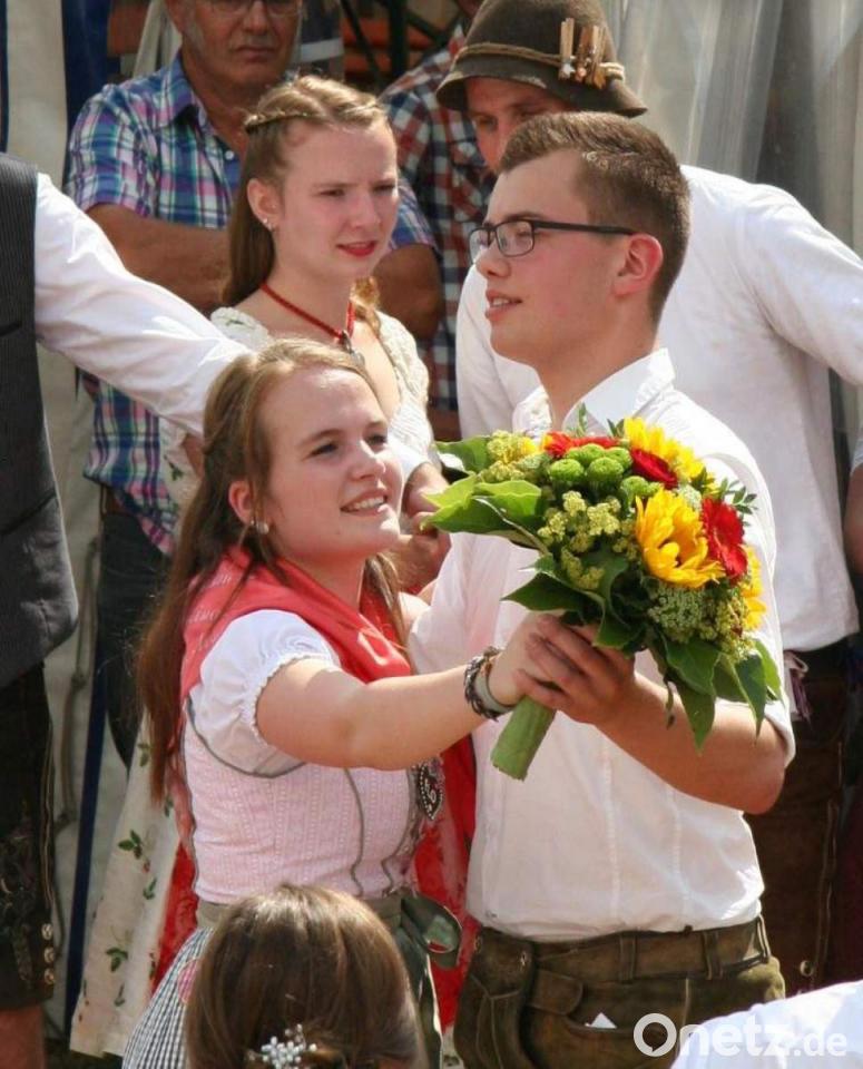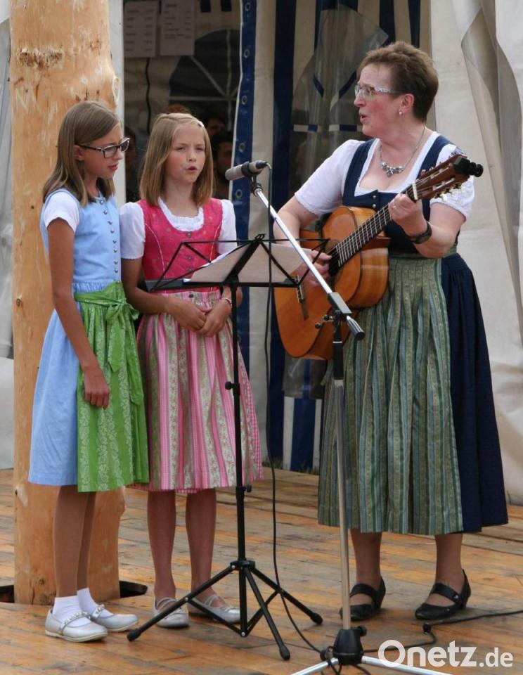 Am Nachmittag gehörte die Aufmerksamkeit der zahlreichen Besucher zunächst den Burgstaller Nachwuchsmusikerinnen Tamia Stauber und Maria Dotzler. Von Rita Butz mit der Gitarre begleitet sangen sie Kirwalieder wie "Des wär nacher i", "Muckenbatscher", "Ja unser Lehrer", "Wann fanger die schöiner Ferien a", "Gelt, daou schaust" und "Soll denn des a Kirwa sa". Für ihren Vortrag erhielten sie mächtig Applaus. Dann marschierten die Boum und Moidln, voran das Quartett "Tuba-Tobi and Friends", vor dem Zelt auf. Sie machten eine gute Figur bei der von den alterfahrenen Kirwapaaren einstudierten Sternpolka, Kreuzpolka, beim Zwiefachen, Jiffy Mixer und beim Walzer. Der endete mit der Kür von Ann-Katrin Müller und Benedikt Dietrich zum Ober-Kirwapaar.