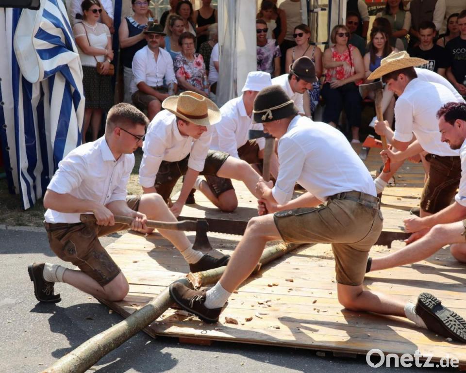 Drei Tage lang ging es im wahrsten Sinne des Wortes „heiß her“ in der Ortschaft. Die Dorfgemeinschaft mit ihrem Ortssprecher Hans Scharl erwies sich wieder als perfekter Gastgeber. Für die Kirwaboum galt am Samstag die alte Weisheit, dass die Götter vor das Vergnügen den Schweiß gesetzt haben. Sie mussten den Kirwabaum aus dem Gebenbacher Kirchenholz holen und ihn, nachdem er von Moidln mit weiß-blauen Bändern geschmückt war, auf dem Festplatz in die Senkrechte hieven. Um 14 Uhr war das Werk vollbracht.