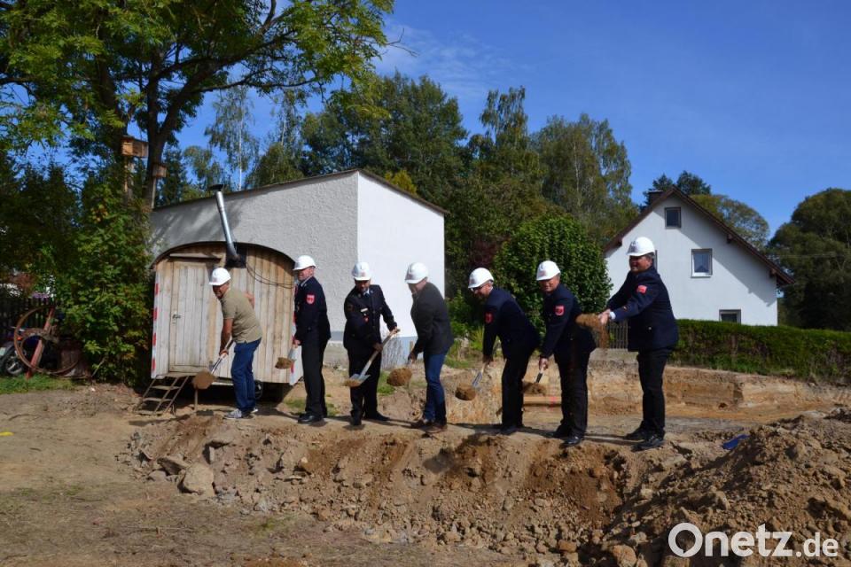 Bevor die zahlreichen Gäste und Bewohner von Burgtreswitz zum Feiern schritten, vollzogen die Kommandanten der Wehr Peter Hartinger und Wolfgang Mayer mit den Ehrengästen, ausgerüstet mit Schutzhelm und Spaten, den Spatenstich. Das Ereignis wurde anschließend bei Kaffee und Kuchen und Getränken mit den Feuerwehrleuten, Ehrengästen und Dorfbewohnern gebührend gefeiert.