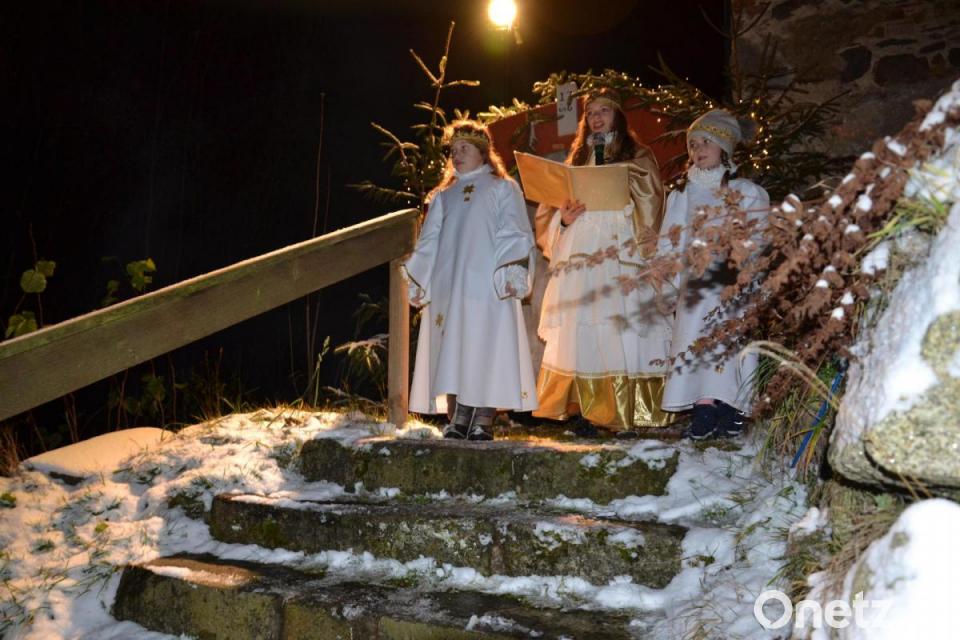 Der Burgtreswitzer Weihnachtsmarkt lockte am Samstag wieder viele Besucher zum Schloss. Musikalische Klänge stimmten in himmlischer Atmosphäre auf das bevorstehende Fest ein. Mit leuchtenden Augen schauten die Kleinen auf das Christkind (Leonie Koch), als dieses mit seinen beiden Engeln (Selma Seiler und Tessa Landgraf) aus der Finsternis der Schlossmauern auf die helle Bühne trat. Das Christkind verkündete die weihnachtliche Frohbotschaft und überreichte Geschenke an die Kinder.