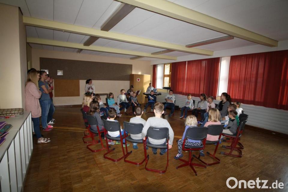 Mit „Schneeflöckchen, Weißröckchen“, „Leise rieselt der Schnee“ und weiteren gesungenen „Weihnachtsklassikern“ sangen sie zur Gitarren- und Keyboardbegleitung von Juliane Hey und Silvia Neukam unverdrossen gegen Frau Holles Winterschlaf an. Auch wenn das Wetter wenig erfreute – das vierstündige bunte Programm mit Singen, Spielen und Basteln tat es umso mehr, worüber sich auch Bürgermeisterin Carmen Pepiuk freute. Gemeinderats-Jugendbeauftragter Bernhard Dötsch und seine elf „guten Geister“ aus der Landjugendgruppe hatten sich wieder viel Mühe gegeben, um den 21 Mädchen und Buben aus der ganzen Gemeinde Trabitz und der Nachbarschaft die Zeit bis zur Bescherung nicht lang werden zu lassen. Da wurden aus Papier und Pappe Weihnachtskrippen, Christbäume und noch manches mehr gebastelt, und in den kreativen Pausen erwies sich aufs Neue, dass das „analoge“ Spiel mit Freunden jede Mattscheibe schlägt. Passend zum Heiligabend gab es mittags Hot Dogs mit Wienern oder Käsekrainern, das Höchste waren hernach ein paar Runden „Der Obstkorb fällt um“ im Kreis der Kameraden, und zu guter Letzt tobte man sich noch auf dem Schulhof bei Fangenspiel und „Ochs am Berg“ nach Herzenslust aus. Da fiel manchem der kleinen Gäste, trotz aller Vorfreude auf den Festabend mit Eltern und Geschwistern, der Abschied schwer. Doch die meisten der Kinder sahen sich am Nachmittag zur Krippenfeier in der Jakobuskirche wieder, wo die „Haidnaabtaler“-Trachtenjugend ihr Krippenspiel „Warum wir Weihnachten feiern“ aufführte.