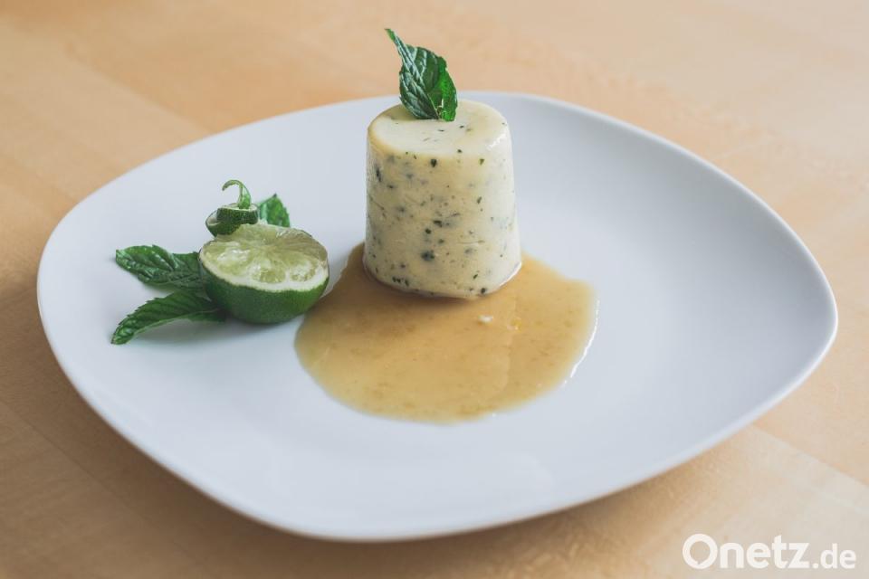 Zubereitung: Die Minze von den Stielen befreien und mit der Milch drei Minuten aufkochen. Durch ein Sieb gießen und die eingeweichte Gelantine in der Milch auflösen. Eigelb und Zucker schaumig schlagen und die heiße Milch ganz langsam unter ständigem Rühren zugeben. Die Minze fein hacken und zusammen mit der geschlagenen Sahne unterheben. In Förmchen füllen und im Kühlschrank mindestens drei Stunden kalt stellen.