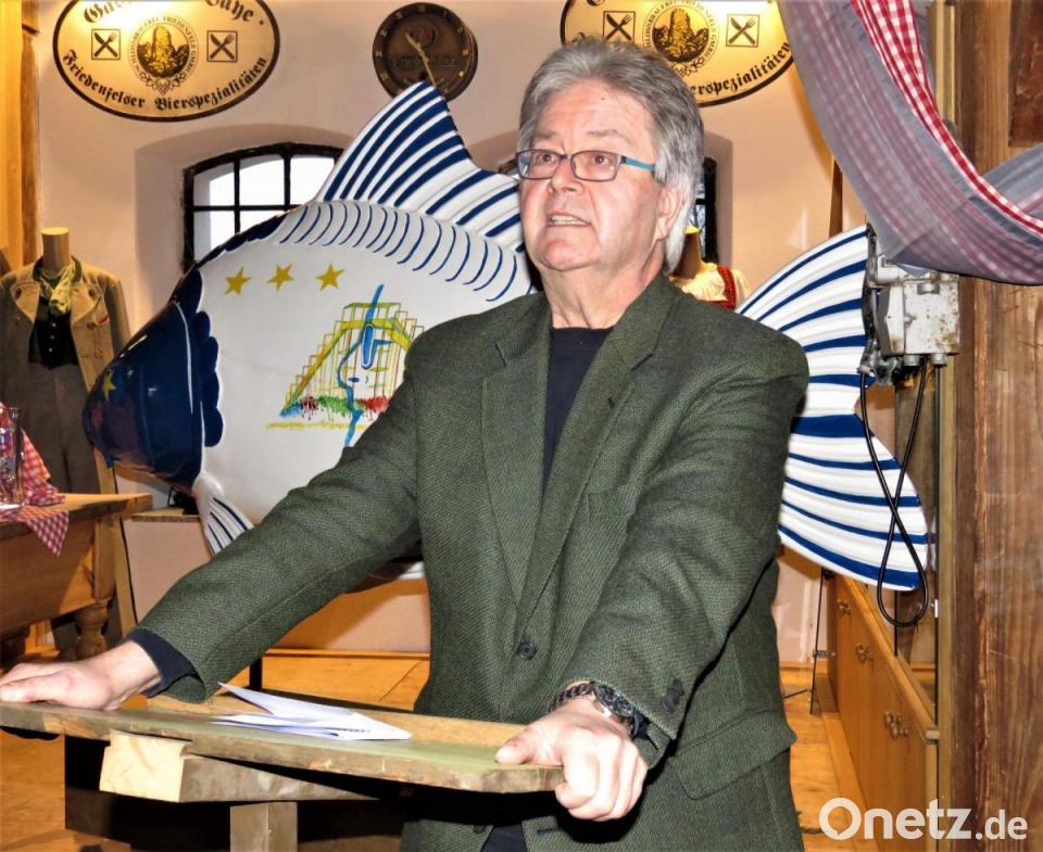 Hans Klupp versprach lachend, auch weiterhin unbequem zu bleiben, wenn es darum gehe, für die Teichwirtschaft und den Erhalt dieses über 1000 Jahre alten Kulturguts zu kämpfen. "Mein Ratschlag wird nicht immer angenehm sein." Von seinen Nachfolgern wünschte er sich eine glückliche Hand. Mit der Übergabe des neuen "Phantastischen Karpfens" von Künstlerin Nicole Schuller aus Mitterteich und einem gemütlichen Beisammensein wurde der Abschied ausgiebig gefeiert. Der Kunstfisch zeigt auf der einen Seite die Himmelsleiter und auf der anderen Seite die Europasterne. Klupp kündigte an, den Fisch auf seinem Grundstück in Schönficht aufzustellen.