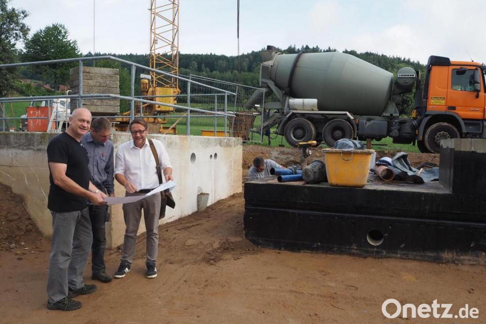 Für die alte Kläranlage am Fuß der Ortschaft bedeutet das nun eine weitgehende Umrüstung. Mit Hilfe von Fördermitteln des Wasserwirtschaftsamt galt es, das gesamte Leitungsnetz zu erneuern und über eine Verbundleitung die 1,6 Kilometer lange Verbindung zur Kläranlage in Thanstein herzustellen. Was den Kanal betrifft, wurde im Zuge der Dorferneuerung in Dautersdorf schon einiges an Vorarbeit geleistet. Das frühere Auffangbecken in Dautersdorf dient nun nur noch als Sammelbecken. "So haben wir eine Reserve, falls es mal Starkregen gibt", erklärt der Bürgermeister beim Termin auf der Baustelle.