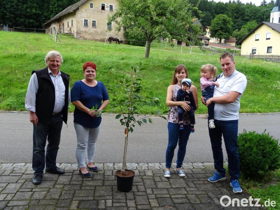 Bei der Obstbaum-Aktion des Gartenbau- und Ortsverschönerungsvereins Thanstein konnte sich der junge Erdenbürger Elias Meixensperger über einen Sauerkirschbaum freuen. Ähnlich wie die Bäume, so soll auch das Leben der neugeborenen Kinder stets reiche Frucht tragen, betonten die beiden Vorsitzenden Josef Köppl und Angelika Failer bei der Übergabe an die Familie.