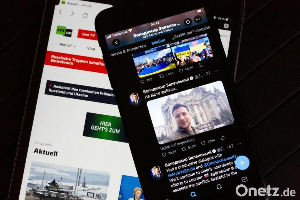 In einem gemeinsamen Schreiben an die Chefs von Meta, Twitter, Google und Youtube fordern die Regierungschef der vier EU- und Nato-Länder, proaktiv Konten in sozialen Medien zu sperren, die zu Angriffskriegen anstiften oder diese rechtfertigen und falsche Informationen verbreiten. Auch die offiziellen Konten russischer und belarussischer Regierungsstellen und staatlich kontrollierter Medien sollten vom Netz genommen werden, hieß es in dem Brief.