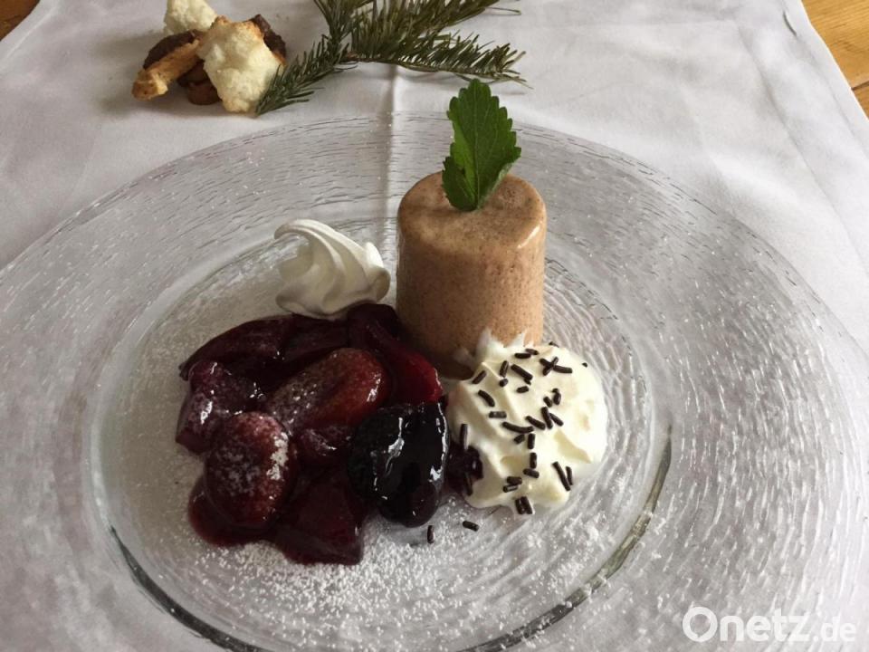 Den Rotwein mit der Zimtstange, der Nelke, der Zitronenscheibe und 90 Gramm Zucker kurz aufkochen und abkühlen lassen. Die Trockenfrüchte über Nacht in dem Rotwein-Sud einweichen, kurz erwärmen und mit der Speisestärke leicht binden.