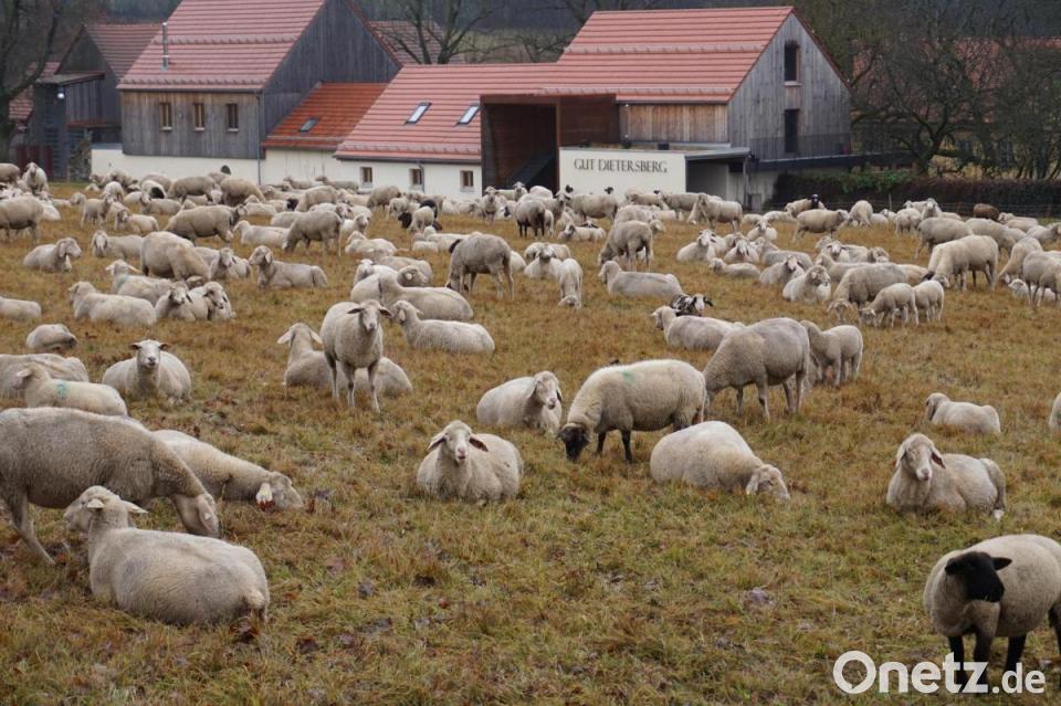 Jetzt im Herbst kommen die Lämmer zur Welt, die an Ostern lebend vermarktet werden. Die paar männlichen Schafe in der Herde sind leicht auszumachen. Sie sind größer, manche haben eine Mähne am Hals und deutlich sichtbare Hörner. Wenn sie Unruhe stiften oder die Herde nicht spurt, dann sind die drei Hirtenhunde mit Chefin Sina, dem älteren Prinz und die eineinhalbjährige Cora unersetzlich. Mit ihnen und dem flexiblen Zaunsystem lassen sich 700 Schafe auf den abgesprochenen Futterweiden unter Kontrolle bringen, ohne dass der Schäfer rund um die Uhr vor Ort sein muss.