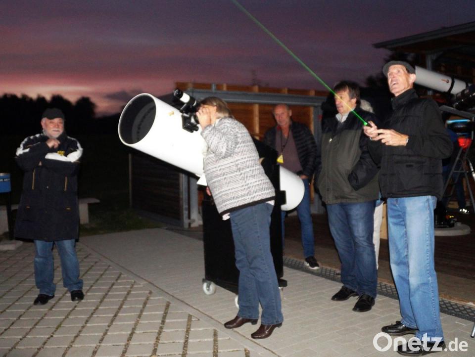 In drei Stationen wurde der Mond umfassend dargestellt. Zum Einen ermöglichten fünf Teleskope im Freien den Blick in den Nachthimmel. Der Mars war sichtbar, der Saturn, der Planet mit dem Ringesystem, der 1,5 Milliarden Kilometer entfernt ist, dagegen nicht. Die Sicht sei durch Feuchtigkeit und den bewölkten Himmel „sehr bescheiden gewesen" so Johann Köppl, Vorsitzender der „Sternenfreunde“. Er erklärte den Gästen die Sterne sowie Sternbilder, die gerade sichtbar waren.