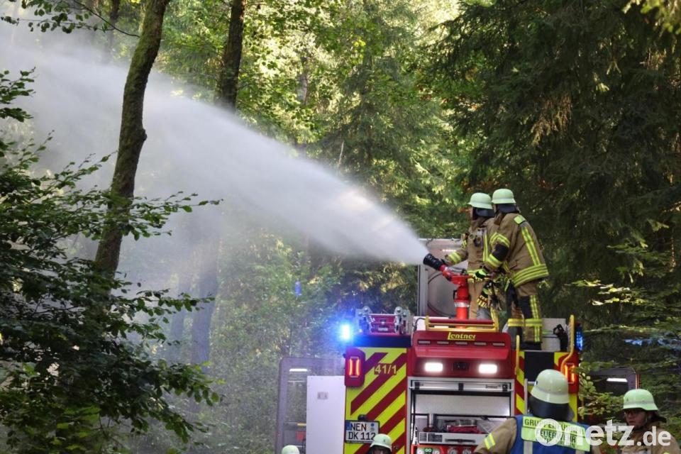 Bei der diesjährigen Brandschutzwoche in der Gemeinde Dieterskirchen wurde ein realistisches Szenario für die Feuerwehren inszeniert. Der Einsatzbefehl lautete „Brand in einer Gartenhütte / Schuppen (Person in Gefahr)“. Insgesamt waren sieben Feuerwehren aus zwei Kreisbrandmeister-Bereichen beteiligt, heißt es in einer Pressemeldung. Die Wehren aus Prackendorf, Dieterskirchen, Bach, Mitteraschau, Kulz, Thanstein-Berg und Dautersdorf wurden kurz vor 15 Uhr alarmiert. Am Einsatzort im Wald bei Prackendorf angekommen, bauten die Einsatzkräfte zunächst die Wasserversorgung auf. Eine B-Leitung wurde von einem nahegelegenen Weiher verlegt, während eine zweite Versorgung über einen Hydranten erfolgte. Die Feuerwehrleute mussten bei dichtem Rauch eine eingeschlossene Person retten und den fiktiven Brand löschen, um ein Übergreifen der Flammen auf den Wald zu verhindern.