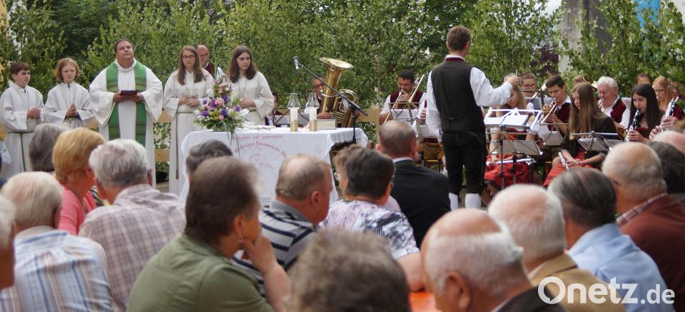 (weu) Der Festgottesdienst im Freien wurde vom Musikverein musikalisch umrahmt, Lesungen und Fürbitten wurden vom Schirmherrn Bürgermeister Johann Graßl sowie von Richard Brunner und Musikanten vorgetragen. In seiner eindrucksvollen Predigt verglich der Geistliche das Leben der Menschen mit den Instrumenten einer Blaskapelle. So wie die verschiedenen Musikinstrumente auf Anordnung des Dirigenten einsetzen, so müssen auch die Menschen auf den großen Dirigenten des Lebens hören, auf Gott.