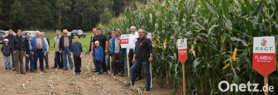 Mit Demo-Anlagen wie in Neuhaus wollen die Firmen den Landwirten eine Entscheidungshilfe für die Sortenwahl an die Hand geben. Rund 20 verschiedene Mais-Arten wurden in jeweils drei bis vier Reihen gepflanzt und mit Namen- und Nummernschildern versehen. Zuerst stellte Konrad Werner die Sorten von RAGT vor. Er sprach von gut bewährten, aber auch neuen Züchtungen. Die Reihen setzte Josef Gschrey mit den Sorten von Pioneer fort.