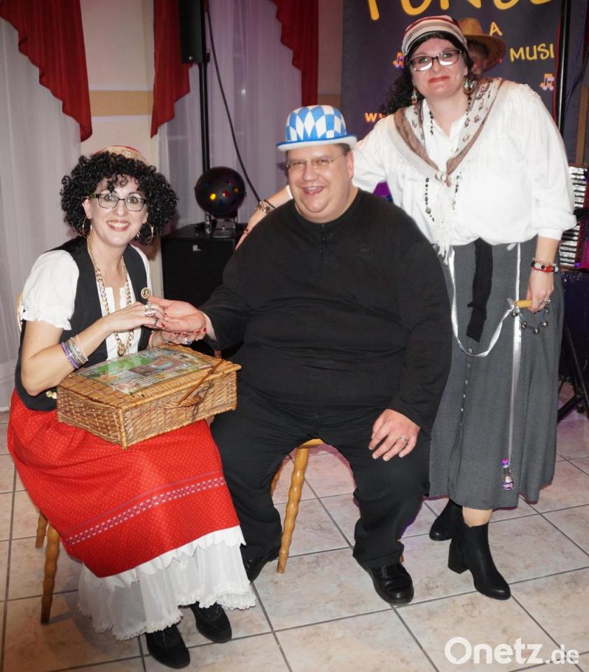 Auch bei zünftigen "Bayerischen" oder "Zwiefachen" war die Tanzfläche immer voll. Kätzchen und Bienen schwirrten herum, ein Scheich war wohl extra aus dem Orient angereist. Aus Rumänien war eine Zigeunergruppe anwesend. Olga (Ingrid Ried) und Swetlana (Beate Lindner) aus Russland suchten sich Pfarrer Markus Urban aus, um ihm aus der Hand zu lesen.