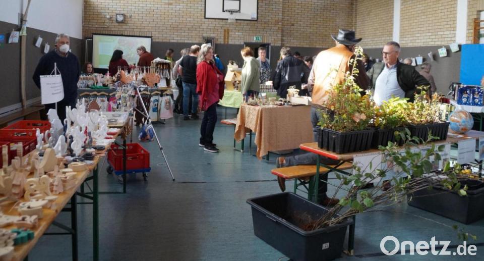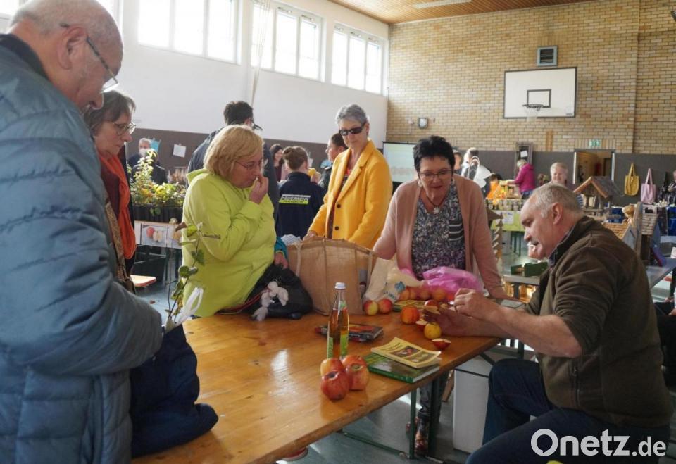 "Bei mir gibt es eine große Vielfalt von dem, was uns die Natur alles schenkt", bot Annemarie Hubatsch ihre Produkte an, vom Schlehensaft und Himbeersirup bis zur Heidelbeer- und Hagebuttenmarmelade. In der Turnhalle hatte Pomologe Tino Gmach alle Hände voll zu tun, um die mitgebrachten Äpfel nach Sorten zu bestimmen. Er war umgeben von vielen Ständen, an denen man unter anderem Taschen aus Kaffeetüten, gedrechselte Brotteller, Holzbasteleien und Zackensterne erwerben konnte.