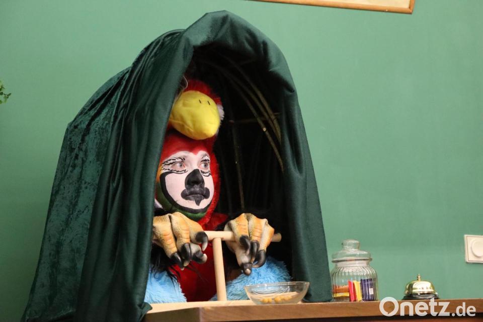 Der Moment, in dem die vielen Kinder in der Vorpremiere ein bisschen zusammenzucken. Viel Geschrei und Lärm hinter dem roten Samt, dann Vorhang auf – und zack! Da liegt eine Leiche. Doch der Schockmoment währt nur kurz. Immerhin ist die Komödie zwar schwarz und die Tote, nunja, tot, aber die Truppe und allen voran der Papagei ziehen die Zuschauer von Anfang an in ihren Bann und retten über jede Länge hinweg.