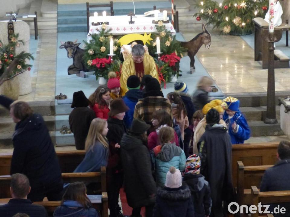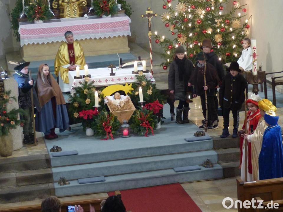 In der St.-Jakobus-Kirche in Döllnitz feierte Pfarrer Adam Nieciecki gemeinsam mit den Kindern und Senioren die Christmette. Der Priester zeigte sich erfreut, dass nach zwei Jahren Pandemie jetzt fast alles wieder normal stattfinden kann. Unter der Regie von Karin Preßl und Caro Lindner hatten zwei Mädchen und sieben Buben das Krippenspiel einstudiert.