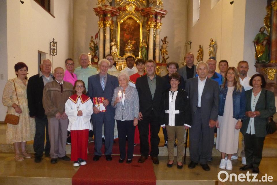 Nichte Sabine Krauß bereicherte als Lektorin die Eucharistiefeier auch mit Meditation und Dankgebet. Mesner Josef Schweiger übergab ein Geschenk der Pfarrei. Bürgermeister Ludwig Biller hatte bereits in Dürnast gratuliert. In der Schlossgaststätte Melchner in Rupprechtsreuth wurde das Ehejubiläum gefeiert.