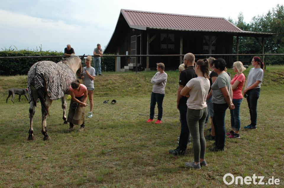 Der Nachmittag gliederte sich in einen rund zweistündigen Theorie-Teil. Hier standen zu Beginn die Grundlagen der Anatomie, insbesondere der Knochen und Sehnen, auf der Tagesordnung. Antworten gab es auch auf Fragen wie: Woran erkenne ich einen guten Beschlag? Welchen Hufschutz braucht mein Pferd? Es folgte ein Überblick über den Hufschutz, der heute aus Stahl, Aluminium oder Kunststoff bestehen kann. Er wird ergänzt durch Hufschuhe und Kunsthornaufträge. Ein kleiner Überblick über mögliche Erkrankungen war Teil des theoretischen Vortrags. Bei der anschließenden Praxis-Komponente stellte die Organisatorin des Nachmittags Romy Schneider ihr Pferd für die Vorführung zur Verfügung. Die Hufschmiedin zeigte mit geschickten Handgriffen verschiedene Pflegemaßnahmen, wie etwa das Erneuern der Hufeisen. Nicole Delling als Vorstandsmitglied des Reitvereins dankte der Referentin für ihre Ausführungen und das geduldige Beantworten der vielen Fragen.