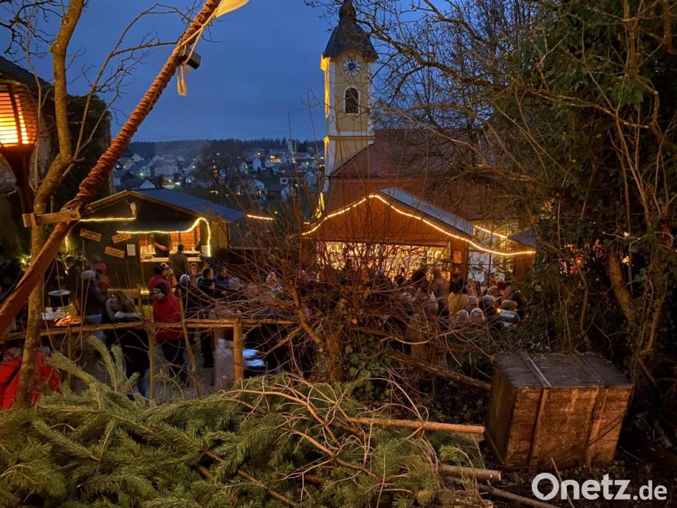 Flackernde Fackeln am Wegesrand und der Duft nach Bratwürsten und Glühwein half manchem vielleicht ein bisschen, den Kirchberg schneller hinaufzukommen: Hier hat der Romantische Weihnachtsmarkt unter der Burg ihren Stammplatz. Organisator Josef Gilch freute sich als Vorsitzender des Historischen Vereins Ebermannsdorf über die Besucherströme, die sich bereits vor dem offiziellen Beginn des Marktes mit Getränken und Speisen eindeckten. Bürgermeister Erich Meidinger dankte im Beisein der Vorsitzenden des Historischen Vereins, der Burgschützen, der örtlichen CSU und JU sowie den Köhlerfreunden den vielen Ehrenamtlichen, die nach der Coronapause wieder bereit waren, beim Herrichten des Platzes und bei der Organisation mitzuhelfen. Hubertus von Eyb gebührte sein Dank für die Überlassung des urigen Geländes.