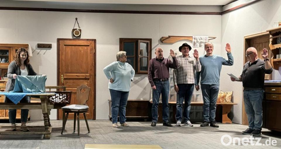 Der Regisseur der Truppe, Franz Pfab, ein Original, das auch vor 40 Jahren schon mitgespielt hat, und sein Bruder Eckhard, der ihm assistiert, konnten personell aus dem Vollen schöpfen. Die beiden fanden in Siegfried König, Michael Elsner und Georg Feuerer ihre drei Eisheiligen. Reiner Rohrwild und Josef Götz komplettieren die Herrenriege. Conny Fuhrmann ist auch mal wieder mit im Team. Genau wie Claudia Lorenz-Pfab, Sabine Deinzer und Marianne Beer zählt sie zu den tragenden Säulen der Schauspielgruppe. Und auch Nachwuchs ist hinzugestoßen. Carolin Vieracker steigt in die Fußspuren ihrer Mutter Brigitte, die in den Anfangszeiten des Öfteren mit auf der Bühne stand. Im Hintergrund souffliert Marianne Widenbauer, Josef Beer betreut die Technik und Monika Weigert kümmert sich um die Haarpracht.