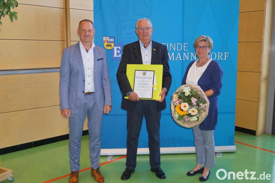 Mit einer Urkunde und einem Geschenk sowie Blumen für die Gattin wurde Johann Bauer nach 36 Jahren im Gemeinderat unter kräftigem Applaus verabschiedet. In die Zeit seiner Tätigkeit fielen große Umstrukturierungen im Gemeindebereich, es wurden unter anderem mehrere Baugebiete ausgewiesen, wodurch die Einwohnerzahl von 1700 auf mittlerweile knapp 2500 stieg. Bauers Augenmerk lag als Seniorenbeauftragter besonders durch den demographischen Wandel auf den immer stärker zu berücksichtigenden Belangen der älteren Mitbürger. Für sein Engagement erhielt er 2004 die Ehrennadel der Gemeinde, 2016 wurde ihm die kommunale Verdienstmedaille in Bronze verliehen. Von 1996 bis 2002 war Hans Bauer auch 2. Bürgermeister. Insgesamt erlebte er während seiner Tätigkeit vier Bürgermeister: Willy Jäger, Albert Gruber, Josef Gilch und Erich Meidinger.
