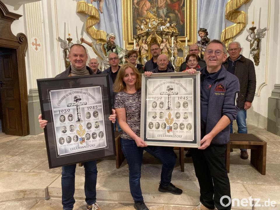 Die Erinnerungstafel an die Opfer des Zweiten Weltkriegs aus Ebermannsdorf war in Vergessenheit geraten. Zumal es mit dem Gedenkstein, der früher in der Ortsmitte des „Alten Dorfes“ stand, einen weiteren Platz des Erinnerns für die Bewohner und vor allem die Angehörigen der Kriegsgefallenen gab. Mit Beginn der Renovierungsarbeiten in der Johanneskirche nahm sich der Historische Verein der Tafel an und lagerte sie zunächst sicher im Rathaus ein.