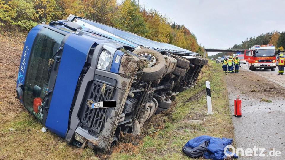 Sattelzug kippt um: A6 bei Ebermannsdorf am Freitag für etwa zwei Stunden gesperrt