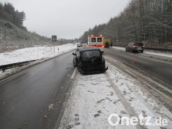 Schnee auf der B 85: Drei Autos in Unfall verwickelt