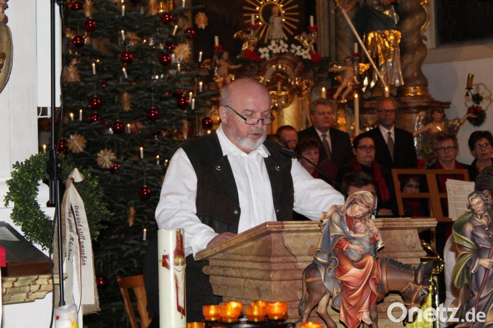 Mitten in der abgedunkelten Pfarrkirche stehend eröffnete ein Bläserquartett (Johannes Prechtl, Trompete, Johanna Pscherer, Flügelhorn, Sebastian König, Tenorhorn, Robert Reger, Tuba) mit „O Wunder, was soll es bedeuten“. Nach der Begrüßung durch Pfarrgemeinderatssprecher Hans Enders lenkte der Kirchenchor mit dem traditionellen „Es ist ein Ros entsprungen“ (Michael Praetorius) und „Jubilate“ (Von Gerhard Kronberg, basierend auf einer Weise von Dimitri Bortnianski) die Aufmerksamkeit auf den hell erleuchteten Altarraum. Die Fichtelgebirgskapelle folgte mit „Inmitten der Nacht“ und dem bekannten, anrührenden „Ave Maria Glöcklein“ von F.X. Engelhardt.