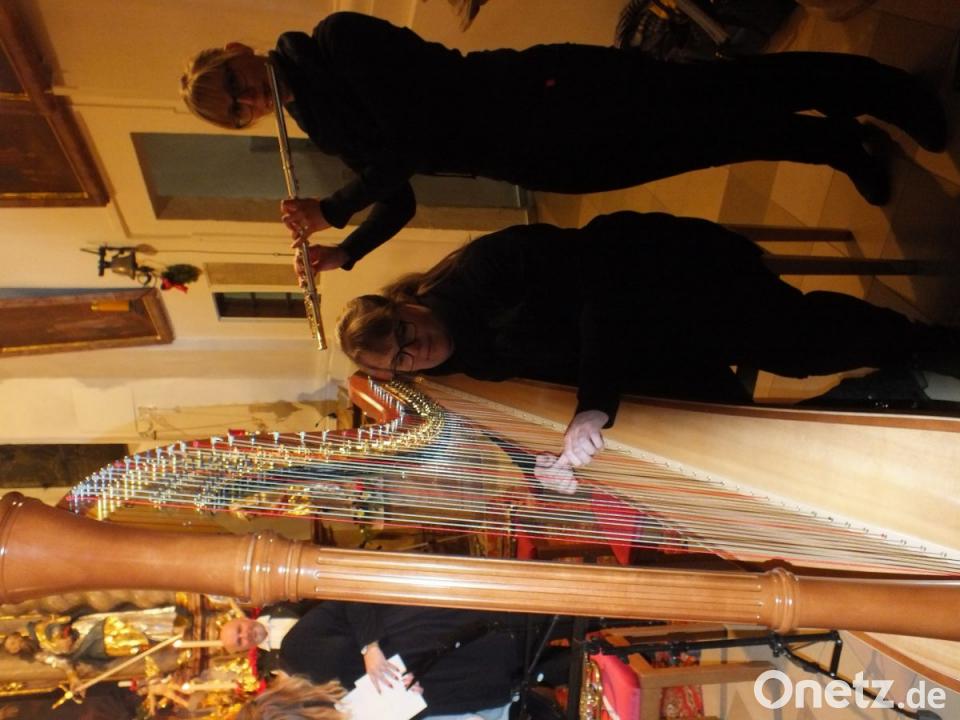 Die Fichtelgebirgskapelle folgte mit den bekannten Weihnachtsliedern „Herbei o ihr Gläubigen“ und „Maria durch ein Dornwald ging“. Danach erklang „From this moment on“ von Shania Twain (Bearbeitung: Sylvia Woods) – eigentlich Popmusik, die sich dennoch hervorragend in die Stimmung des Konzerts einfügte, gefühlvoll vorgetragen von Franziska Knott und ihrer Schwester Johanna Pscherer mit Harfe und Querflöte.