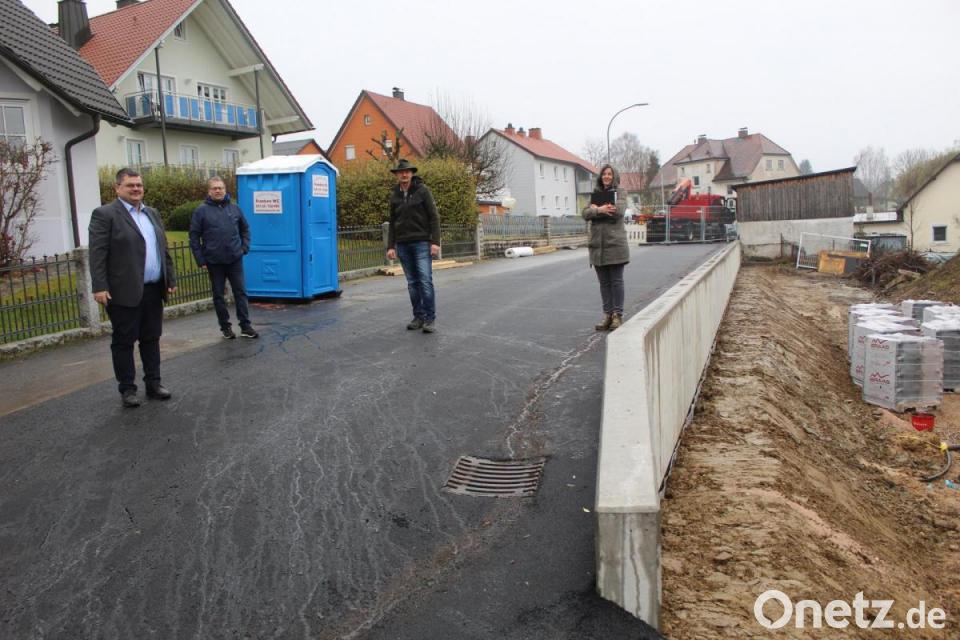Am 28. September dieses Jahres starteten die Bauarbeiten. Die alte Mauer musste abgetragen werden und die neue Mauer mit Ortbeton wurde erstellt. In der Zwischenzeit ist die Mauer fertiggestellt und die Fahrbahn in diesem Teilbereich erneuert. Zusätzlich wird demnächst noch ein Metallstab-Gitterzaun zur Herstellung der Verkehrssicherheit angebracht. Am Donnerstag dieser Woche erfolgte die Abnahme der Baumaßnahme durch Maja Ruesch vom Statikbüro Wittmann aus Marktredwitz. Mit dabei waren Zweiter Bürgermeister Michael Sticht, Albert Hofmann vom Bauamt der Verwaltungsgemeinschaft Neusorg und der Bauleiter der Firma Bauer, Erwin Schraml.