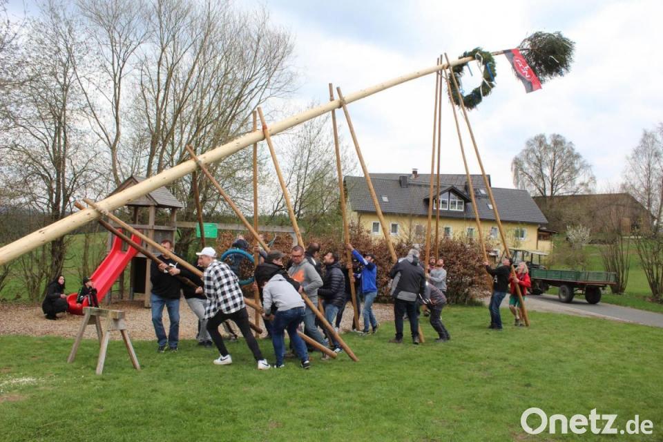 Gleich drei Maibäume ragen in der Gemeinde Ebnath in den weiß-blauen Himmel: Den alten Brauch pflegten die Mitglieder der Feuerwehr, die Dorfgemeinschaft in Hermannsreuth und der Stammtisch in Grünlas. Am Vorabend des Maifeiertags stellte die Feuerwehrler ihren Maibaum in Ebnath auf. Nachdem der rund 26 Meter lange Stamm mit Zunftzeichen, Kränzen, Girlanden und Fahnen geschmückt worden war, transportierten ihn die Floriansjünger zum alten Feuerwehrhaus. In geselliger Runde feierten die Gäste zu den Klängen der Fichtelgebirgskapelle in die erste Mainacht hinein. Einen neuen Besitzer hat der Frühlingsbote bereits: Das Los fiel auf Bianca und Klaus Käß aus Erdenweis. Die Dorfgemeinschaft Hermannsreuth stellte ausschließlich mit Muskelkraft den Maibaum am Dorfgemeinschaftshaus auf. Genauso stolz sind die Grünlaser auf ihren Baum, der beim Gasthaus Schmidt in die Senkrechte gebracht wurde. Die Ebnather Feuerwehr, die Dorfgemeinschaft Hermannsreuth und der Grünlaser Stammtisch gaben sich erfolgreich alle Mühe, die zahlreichen Gäste zu verwöhnen.