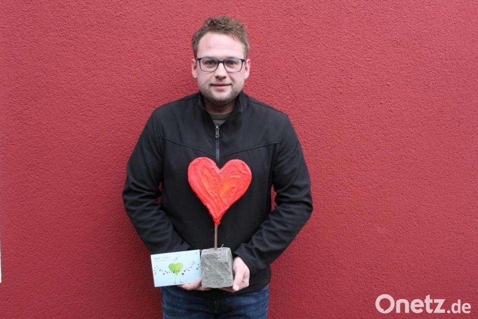 Eine Überraschung erlebten die Ebnather Carolin und Johannes Bauer: Vor ihrer Tür stand ein Paket. Es beinhaltete ein bedeutungsvolles Präsent: ein Pflasterstein, auf dem ein rotes Herz steht. Absender des Pakets war die „Bürgerstiftung Bad Münstereifel“. Die Stiftung wollte sich mit diesem kleinen Präsent bei allen Spendern aus Ebnath bedanken, die vergangenes Jahr die Flutopfer mit kleinen und großen Spenden unterstützt haben.