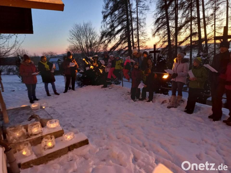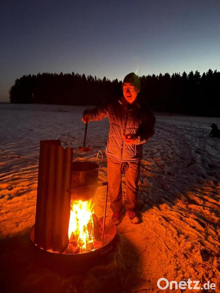 Mitglieder und Freunde des Ebnather Fichtelgebirgsvereins wanderten vor Kurzem auf den Kalvarienberg. Los ging es bei herrlichem Winterwetter in der Abenddämmerung vom Kinderspielplatz an der Kösseinestraße zur Kapelle auf dem Kalvarienberg. Hier gab es einen besinnlichen Teil mit Liedern, Gedichten und Geschichten zur Weihnachtszeit. Danach ging die Fackelwanderung durch einen verschneiten Fichtenwald über eine weiß angezuckerte Wiese zu einer Hütte, die Kassier Josef Söllner zur Verfügung gestellt hatte. Die Lagerfeuer, an denen Würstchen und Glühwein erwärmt wurden, waren schon von Weitem sichtbar. In der Hütte konnten sich die Wanderer bei Kerzenschein an einem Ofen aufwärmen.