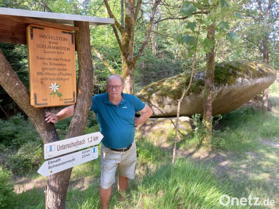 Wer von Unterschurbach aus 1,2 Kilometer westlich bis zur Hundslohe in den Wald hinein unterwegs ist, kommt zu einem bemerkenswerten Naturdenkmal: zum „Wackelstein“ oder auch „Edelmannstein“ genannt. Der Überlieferung nach versteckten hier die Edelleute von Ebnath und Schwarzenreuth ihre Schätze, um sie vor den plündernden Hussiten in Sicherheit zu bringen, heißt es in einer Mitteilung des Fichtelgebirgsvereins (FGV) Ebnath. Demnach existiert noch heute die Sage vom „Tiefen Brunnen“, in dem noch immer die Schatzkisten ruhen.