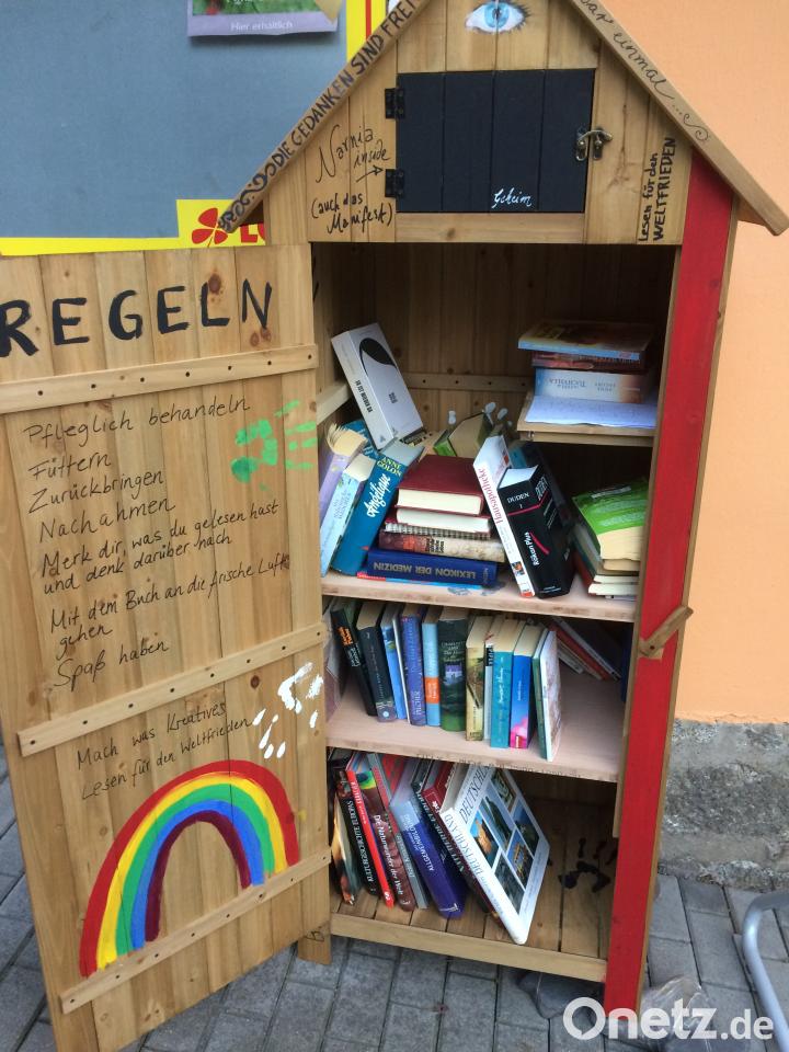 (soj) Das farbenfrohe kleine Häuschen, das sich bei näherer Betrachtung als "Mini-Bibliothek" entpuppt, wurde nun wieder vor der Ebnather Bäckerei Söllner aufgestellt. Zitate und Slogans, einige farbenfrohe Bilder und Handabdrücke verzieren das kleine Holzhäuschen mit „Geheimfach“ und regen dazu an, dieses etwas genauer zu inspizieren. Hier liest man Dinge wie „Die Gedanken sind frei“ oder auch „Konstruktiver Vadalismus“. Öffnet man die Tür, hat man Zugriff auf eine mittlerweile beträchtliche Anzahl an Büchern verschiedenster Genres. Egal ob jung oder alt, es findet jeder Bücherwurm einen interessanten Schmöker, eine Jugendlektüre oder auch den ein oder anderen Ratgeber. Doch die Bibliothek will auch gefüttert werden - man darf ausgelesene Bücher hineinstellen und so vielleicht einen anderen Leser erfreuen. Bei schlechterer Witterung ab Herbst wird die Bibliothek wieder im Trockenen zu besichtigen und benutzen sein.