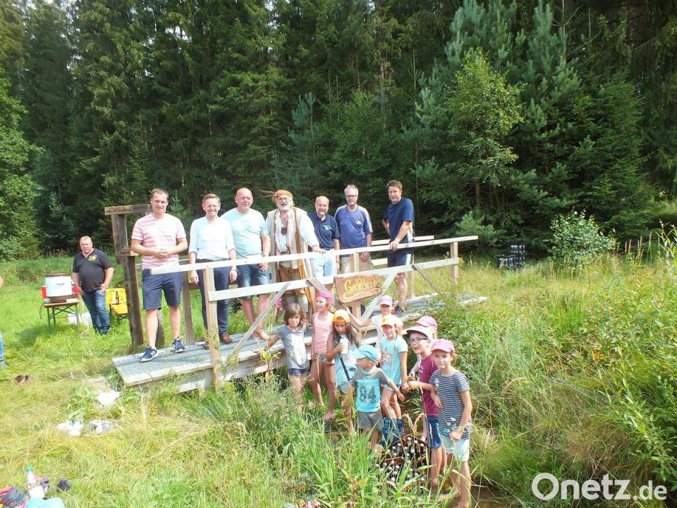 (soj) Im Herbst letzten Jahres hatten Mitglieder des CSU-Ortsverbandes die Brücke über den Goldbach bei Hermannsreuth erneuert. Die bisherige Brücke war total marode und nicht mehr sicher für die vielen Wanderer. Jetzt wurde die neue Brücke im Rahmen des Ferienprogramms seiner offiziellen Bestimmung übergeben.