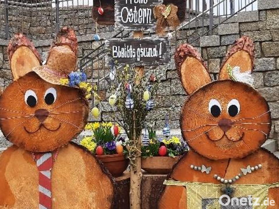 Das Osterfest rückt näher. Im Herzen von Ebnath auf dem neugestalteten Marktplatz wurde ein Osterhasenpaar aufgestellt, das vor einigen Jahren aus großen Holzscheiben gebastelt worden war. Die Hasendame ist circa einen Meter groß, der Hasenmann hat eine Größe von 1,2 Meter. Der Hase hat auch einen Korb mit Ostereiern und Blumen dabei. Auf einem angebrachten Schild steht der Ostergruß: „Frohe Ostern und bleibts gsund!“ Monika und Gerhard Horn sowie Nadine Prechtl hatten das Kunstwerk im Vorfeld neu drapiert und den restlichen Schmuck angebracht. Auch neue Ohren hat das Hasenpaar bekommen. Selbst Bürgermeister Wolfgang Söllner packte beim Transport mit an. Der Gemeindechef bedankte sich für das ehrenamtliche Engagement der Helfer.