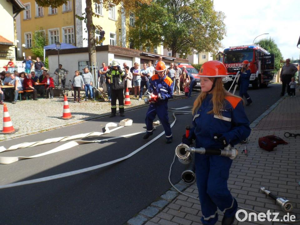 Zunächst zeigte die Jugendfeuerwehr den „Kampf David gegen Goliath“. Dabei wurden durch "Halten und Rückhalten" zwei Erwachsene von den Kindern in die „Schranken“ gewiesen. Weiter erklärten die Jugendlichen in der Gerätekunde den Aufbau einer theoretischen Wasserentnahme aus einem Unterflurhydrant, die Wasserförderung und die Wasserabgabe. Bei der Schauübung der Kinderfeuerwehr war ein umgestürzter Baum, der über die Fahrbahn lag, das Problem. Bereits die Kleinen wussten dabei das Absetzen eines Notrufes und das Abarbeiten des Einsatzes nach den Richtlinien für Erwachsene richtig auszuführen.